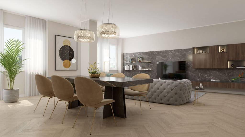 Royal Immobili & Investimenti propone questo esclusivo QUADRILOCALE situato al quinto piano di uno stabile signorile anni '60 con servizio di portineria e ascensore. L'immobile, in corso di completa ristrutturazione è molto luminoso a motivo di una tripla esposizione. La disposizione degli ambienti è stata così studiata: Ampia zona giorno con cucina a vista, tre camere da letto matrimoniali di cui una dotata di bagno en-suite finestrato, un secondo bagno finestrato a servizio di tutto l'appartamento e una comoda zona lavanderia. L'immobile è arricchito dalla presenza di una cantina e da tre balconi (ogni ambiente affaccia su un balcone). . Le finiture, di pregio, vanno dal parquet di ROVERE al GRESS PORCELLANATO, di prima scelta, per il bagno. Tapparelle elettriche e aria condizionata canalizzata Daikin. LA VENDITA E' SOGGETTA AD IMPOSTA DI REGISTRO (NO IVA). L'APPARTAMENTO E' IN CORSO DI COMPLETA RISTRUTTURAZIONE. Il contenuto del presente annuncio è indicativo e non costituisce pertanto elemento contrattuale. Le immagini hanno un valore puramente illustrativo