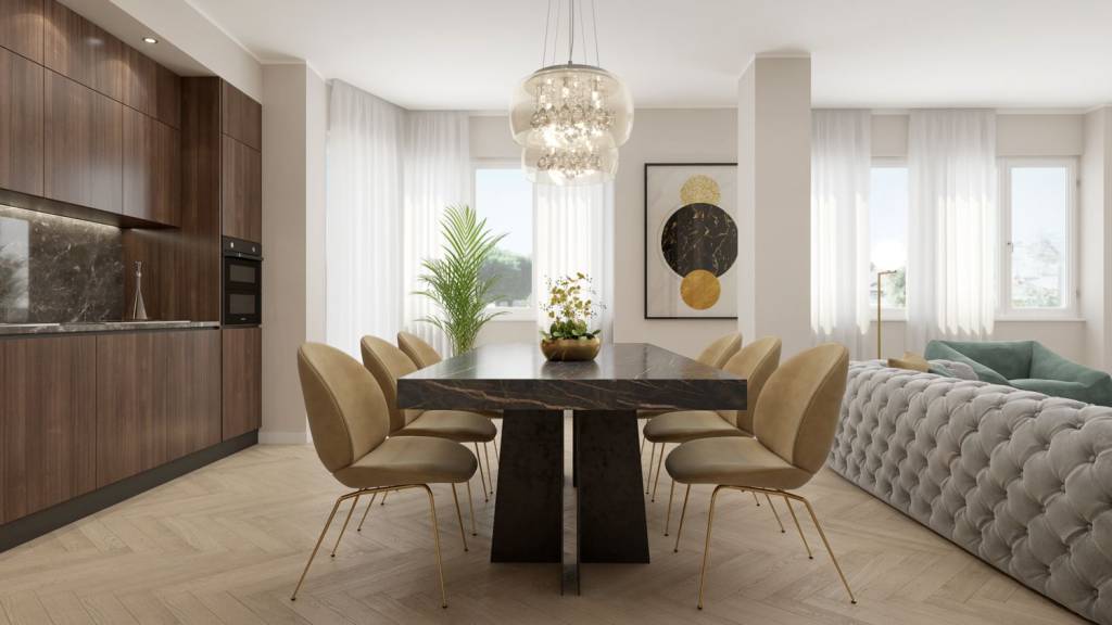 Royal Immobili & Investimenti propone questo esclusivo QUADRILOCALE situato al quinto piano di uno stabile signorile anni '60 con servizio di portineria e ascensore. L'immobile, in corso di completa ristrutturazione è molto luminoso a motivo di una tripla esposizione. La disposizione degli ambienti è stata così studiata: Ampia zona giorno con cucina a vista, tre camere da letto matrimoniali di cui una dotata di bagno en-suite finestrato, un secondo bagno finestrato a servizio di tutto l'appartamento e una comoda zona lavanderia. L'immobile è arricchito dalla presenza di una cantina e da tre balconi (ogni ambiente affaccia su un balcone). . Le finiture, di pregio, vanno dal parquet di ROVERE al GRESS PORCELLANATO, di prima scelta, per il bagno. Tapparelle elettriche e aria condizionata canalizzata Daikin. LA VENDITA E' SOGGETTA AD IMPOSTA DI REGISTRO (NO IVA). L'APPARTAMENTO E' IN CORSO DI COMPLETA RISTRUTTURAZIONE. Il contenuto del presente annuncio è indicativo e non costituisce pertanto elemento contrattuale. Le immagini hanno un valore puramente illustrativo
